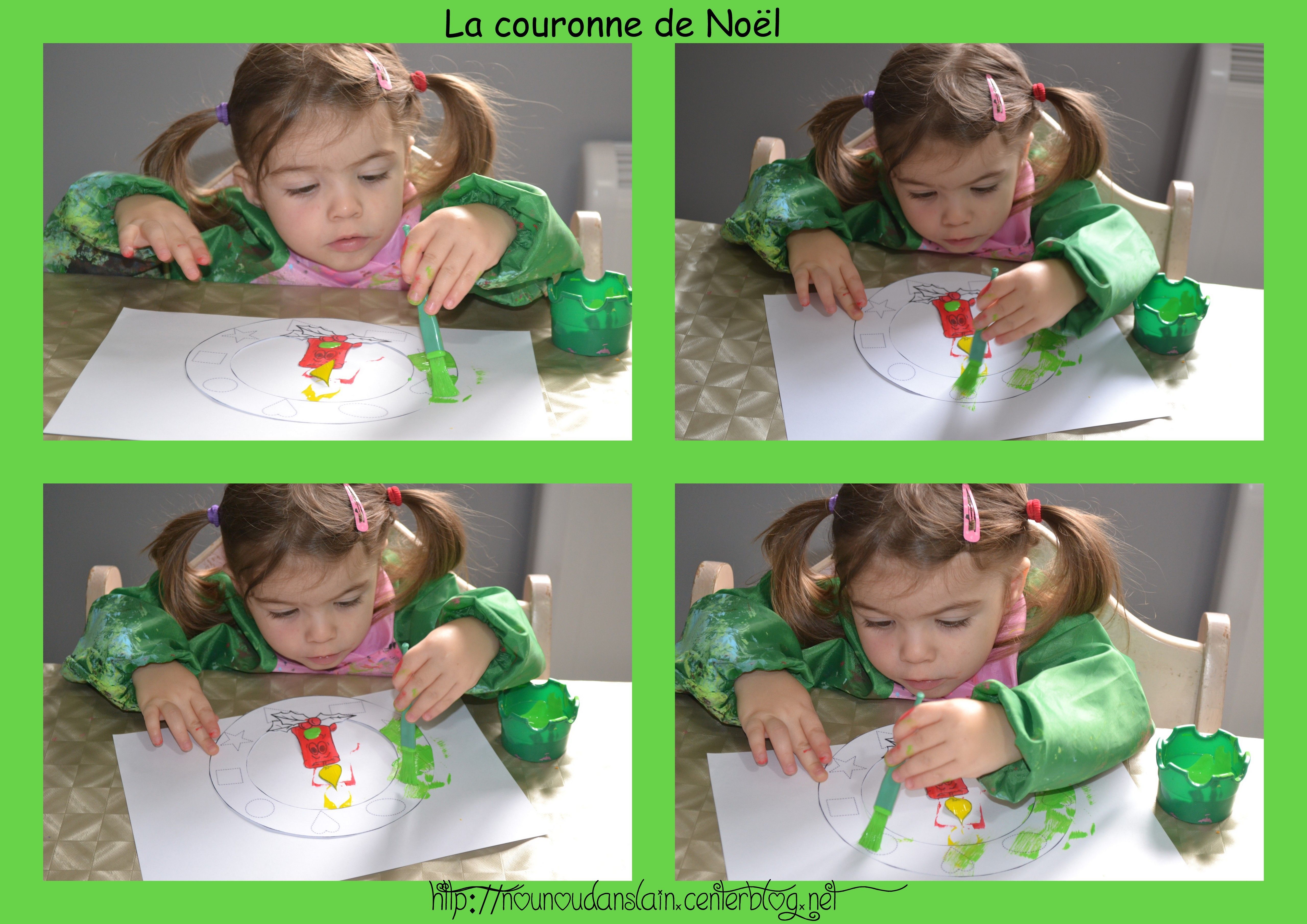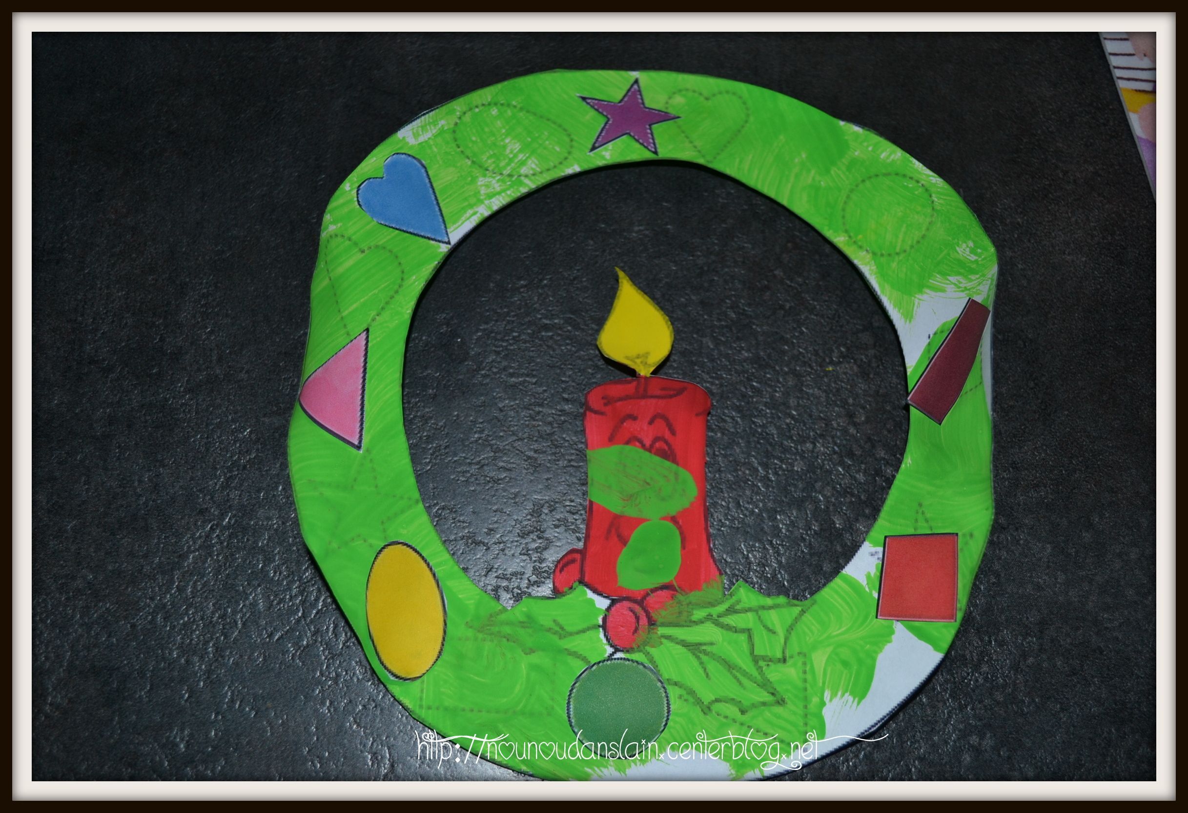 Nous avons réalisé la couronne de noël à l'aide de la peinture et gommettes